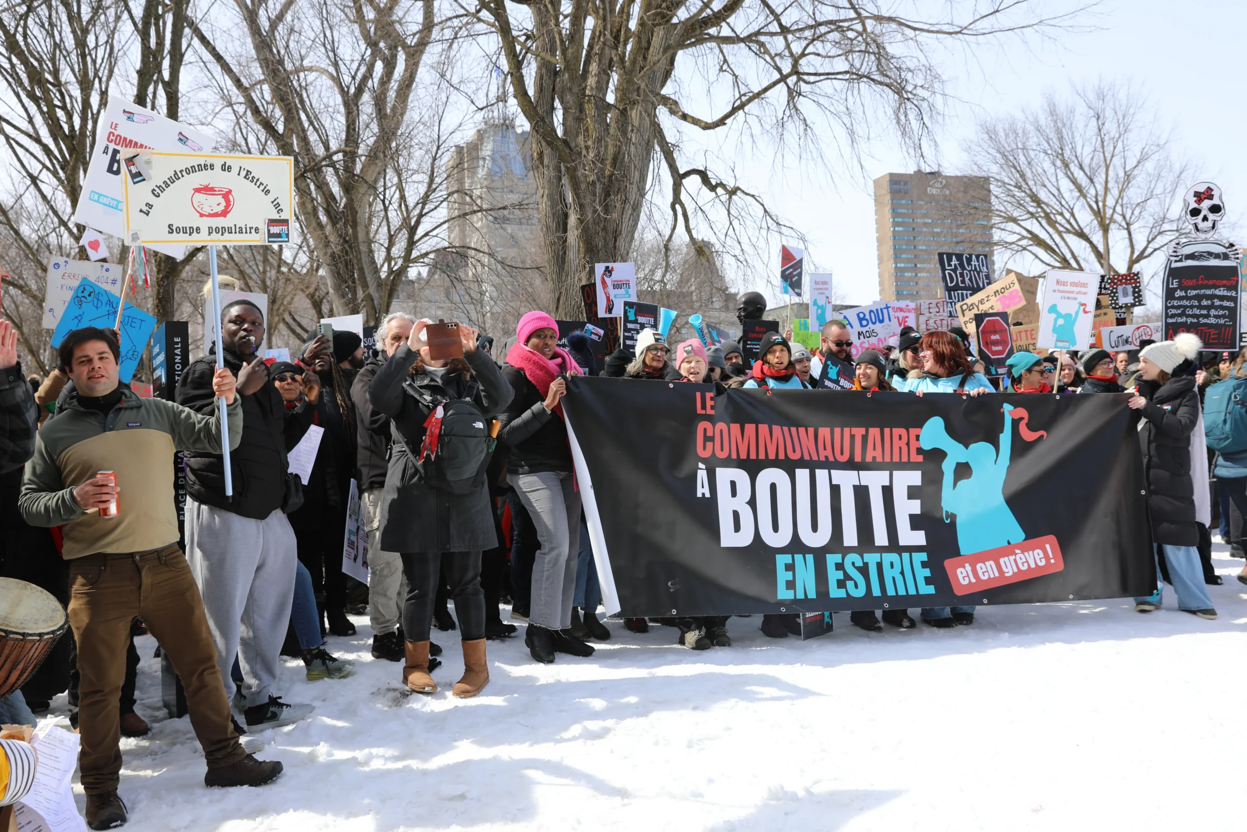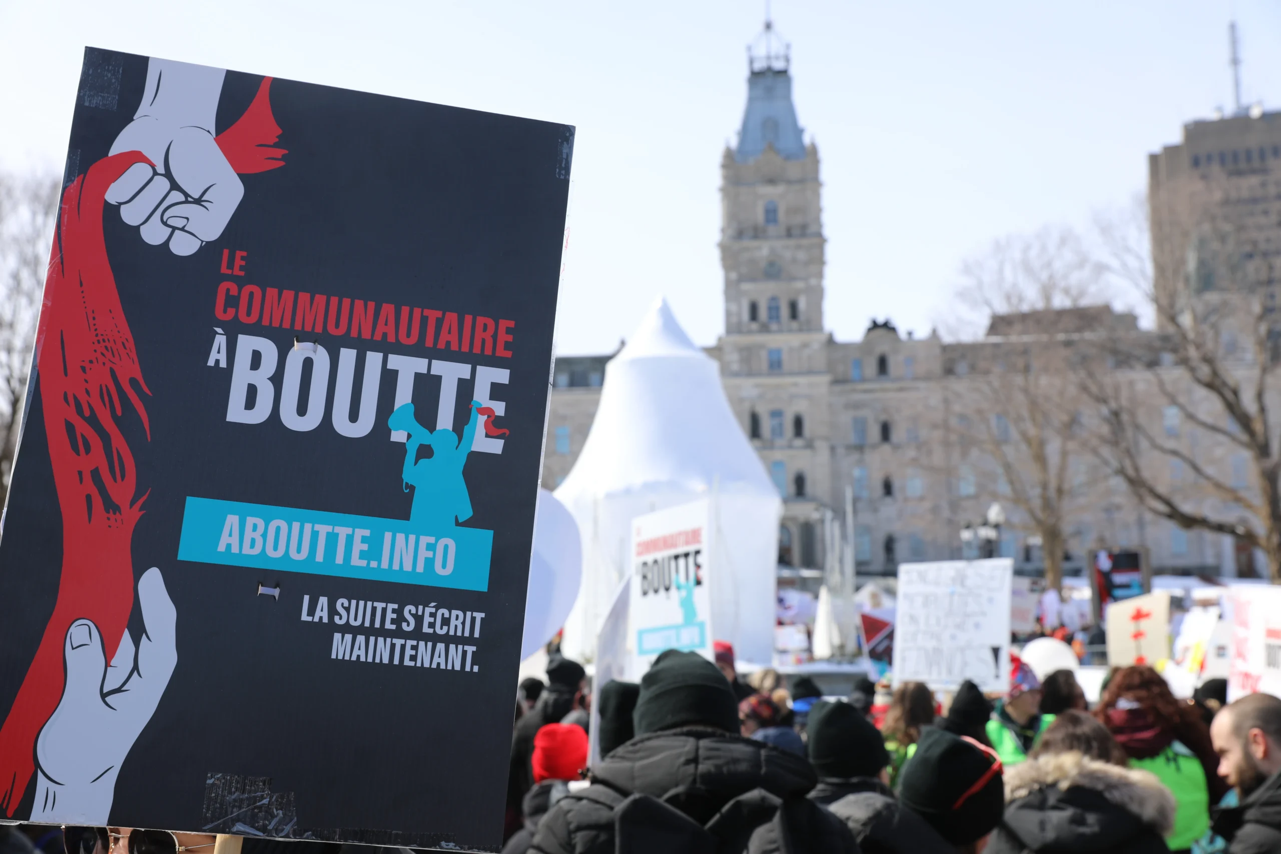 Après 2 semaines de grève et de mobilisations pour près de 1800 organismes communautaires, le point culminant du mouvement Le communautaire à boutte s’est fait sentir le 02 avril 2026 devant l’Assemblée nationale du Québec.