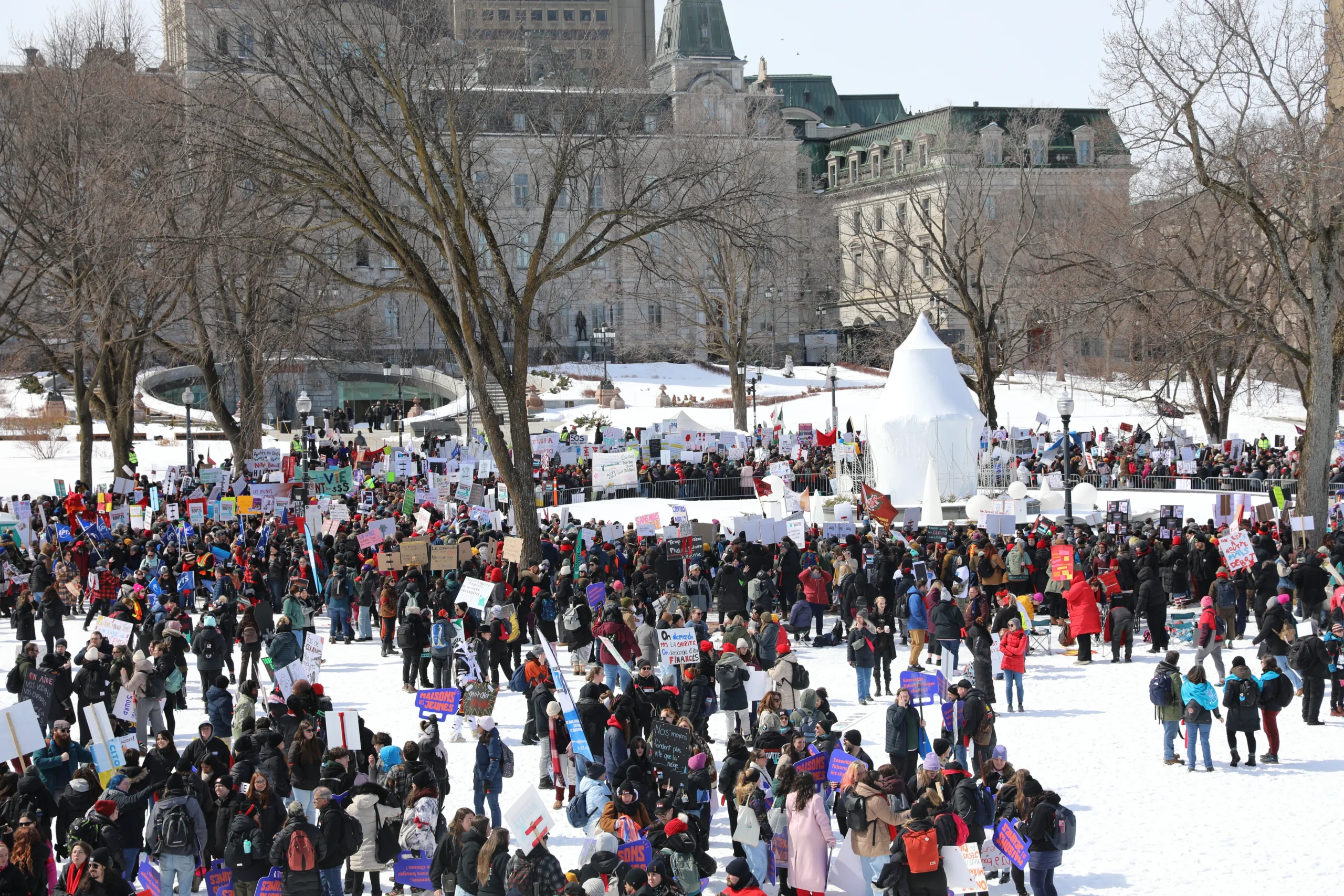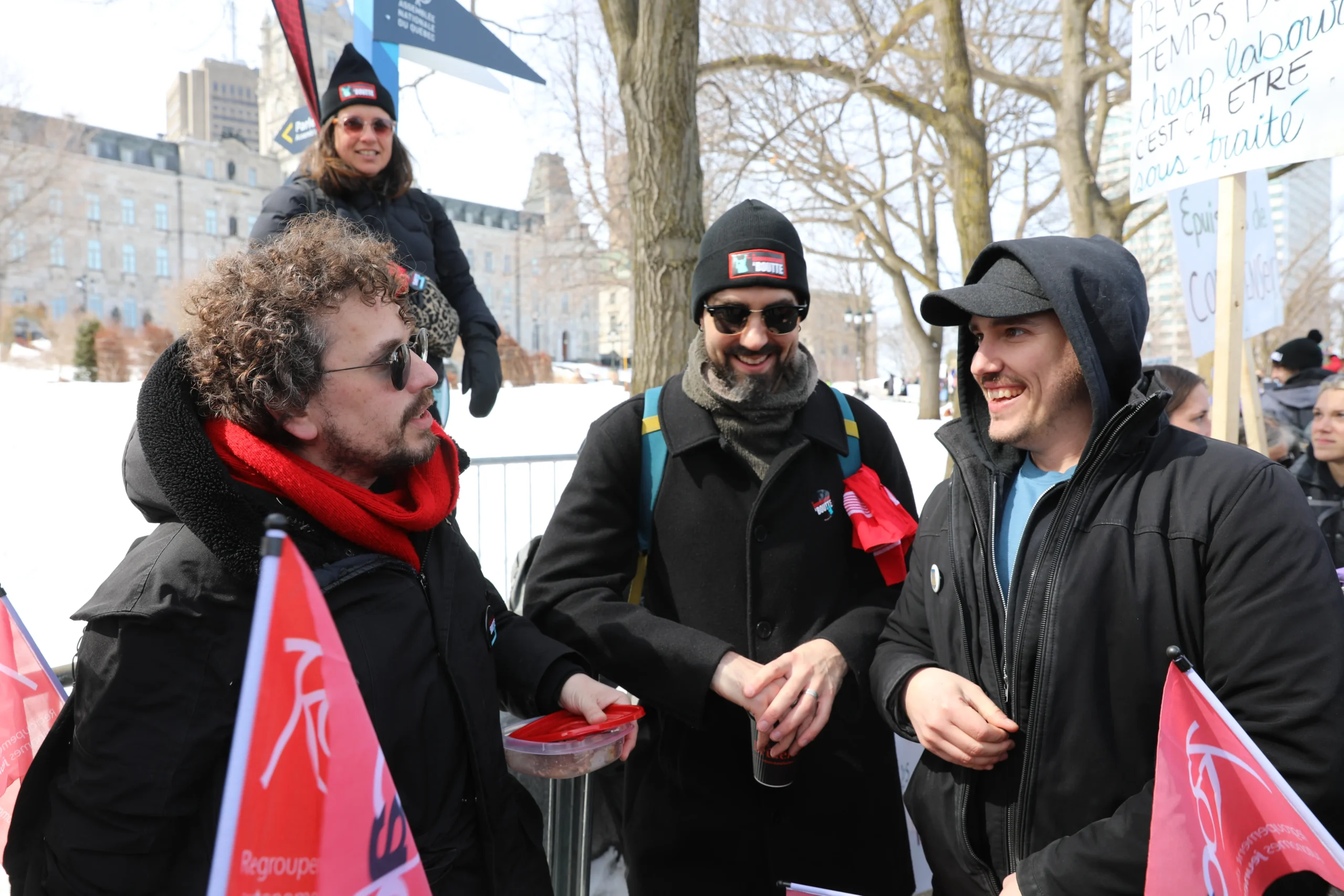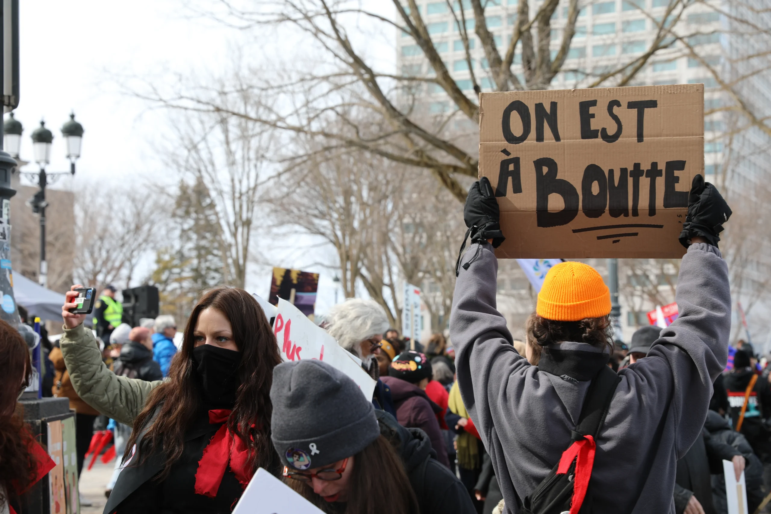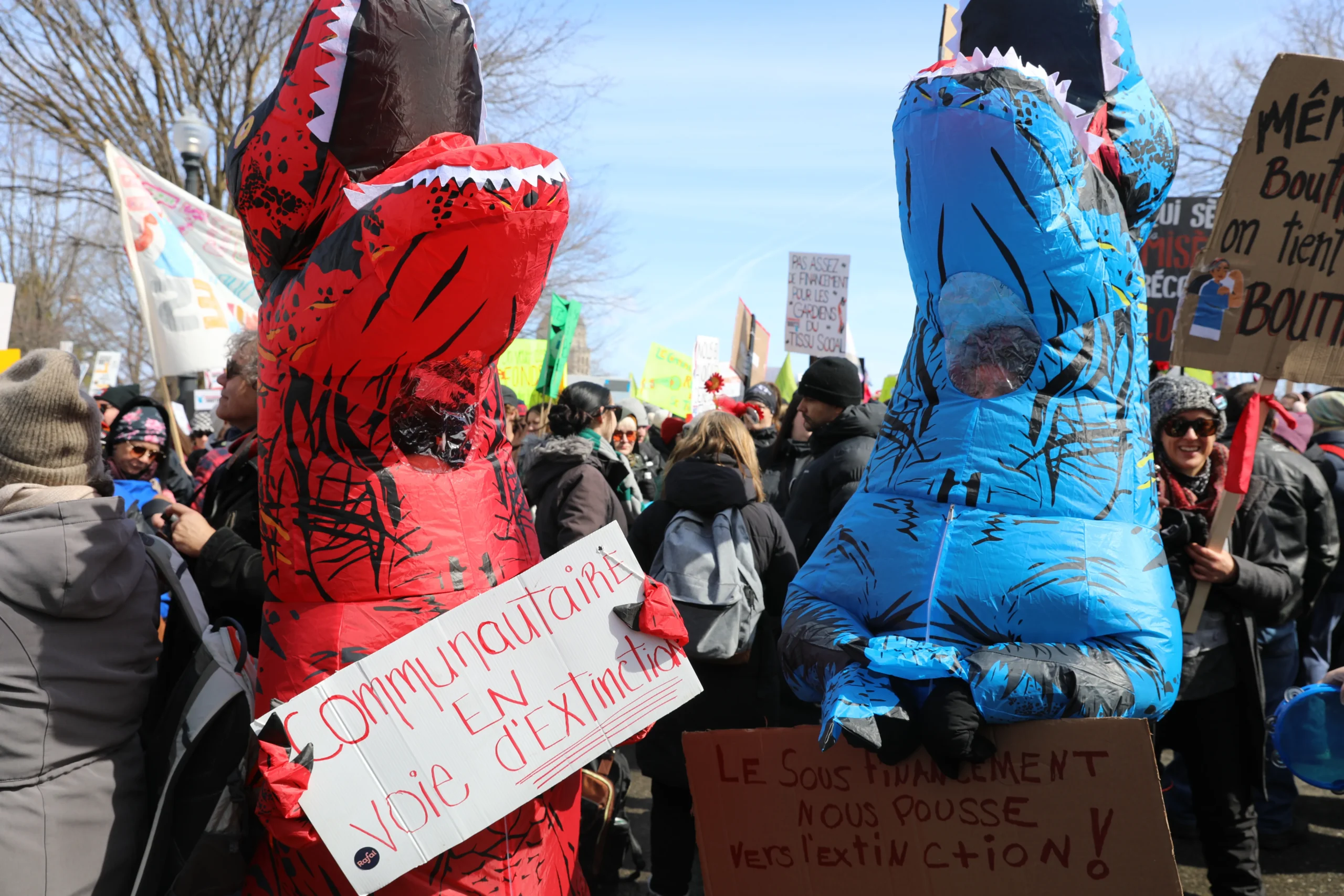 Venues des 4 coins de la province, près de 10 000 personnes, foulard rouge au bras et pancartes brandies, se sont rassemblées devant l’Assemblée nationale pour exiger de meilleures conditions de travail, un financement adéquat et une vraie reconnaissance du milieu communautaire.