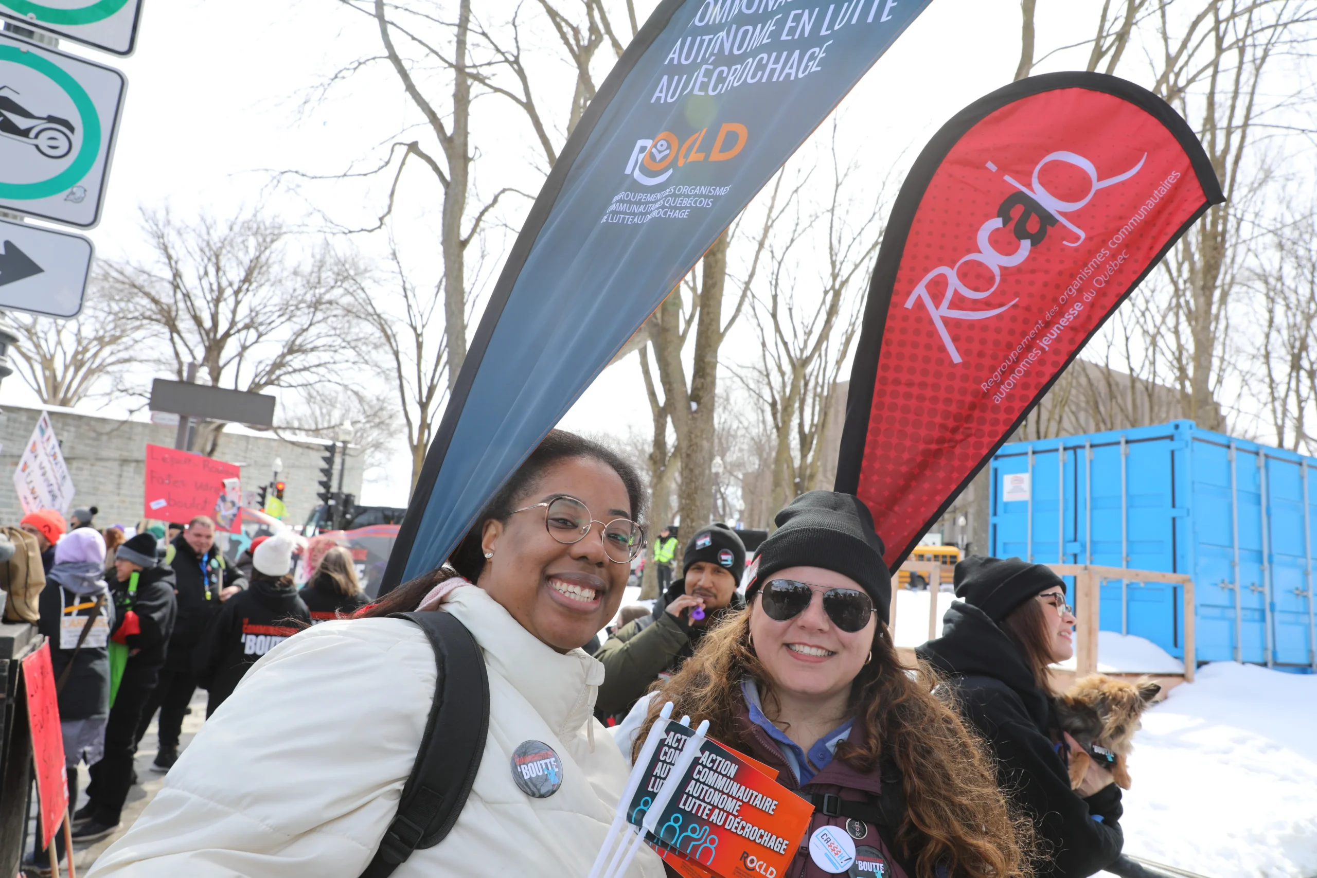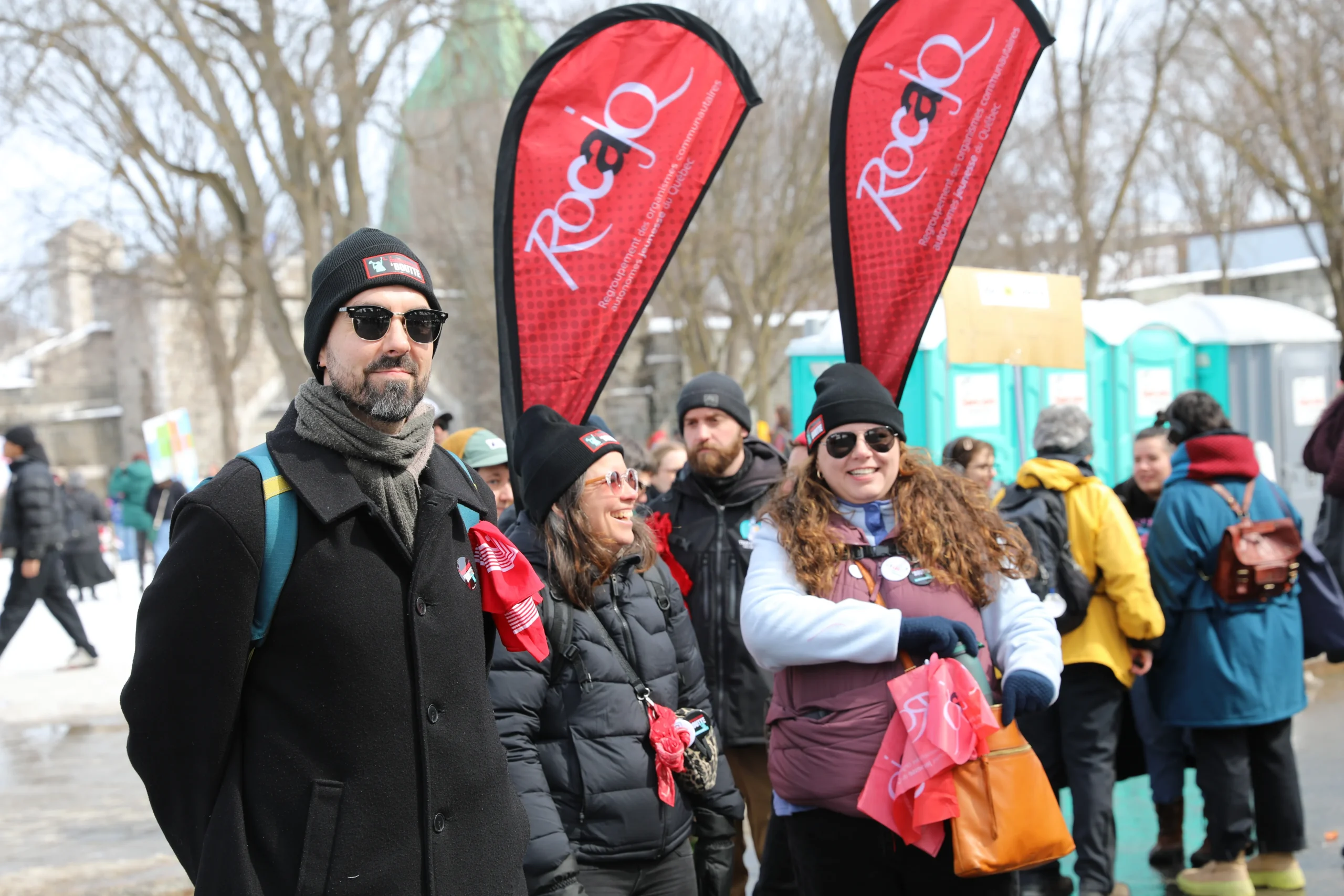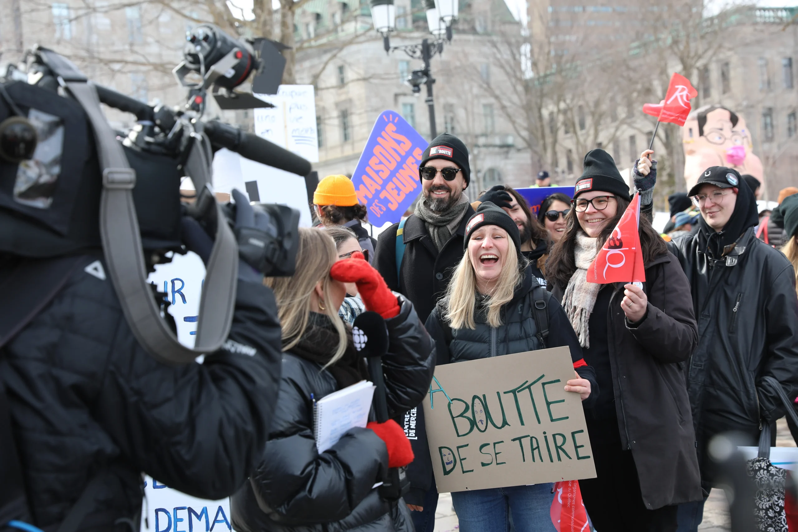 L’équipe du ROCAJQ et une partie de ses membres étaient présents dans la foule qui a scandé une bonne partie de la journée les slogans appelant à l’action. « On veut les moyens de bien payer nos équipes, on veut les moyens de faire du travail de qualité et de rester nous-mêmes en santé », souligne la directrice générale du ROCAJQ, Noémie Roche, devant l’Assemblée nationale.